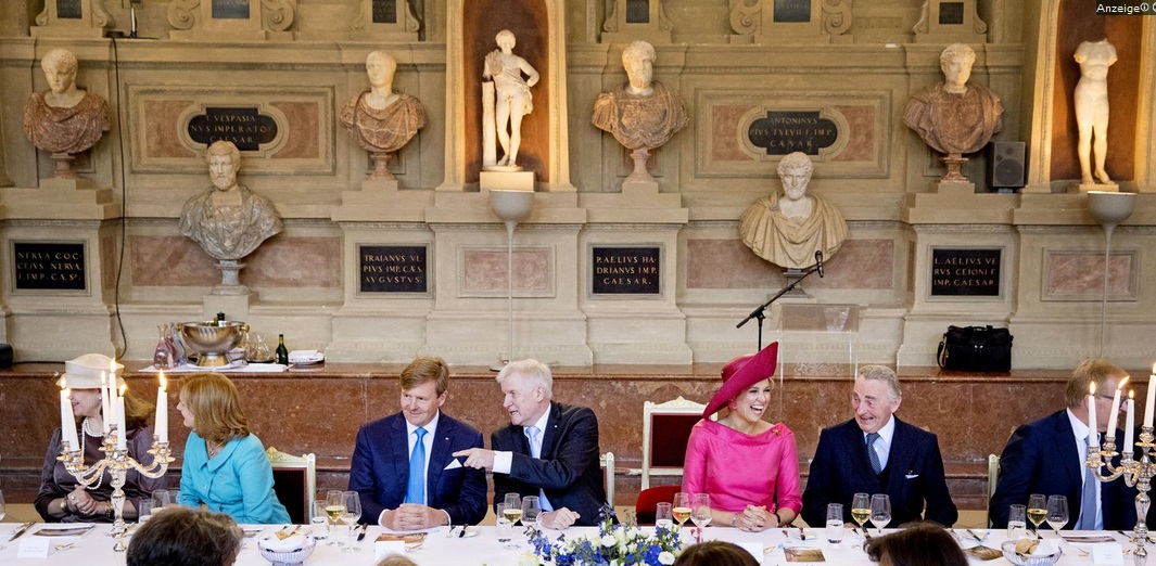 Das ist ein Foto aus der Bayerischen Staatskanzlei, bei einem Staatsempfang des niederländischen Königspaars und vor dem Verzehr von Rinder-Medaillons mit vanillierter Karotte und Kartoffel-Mousseline.