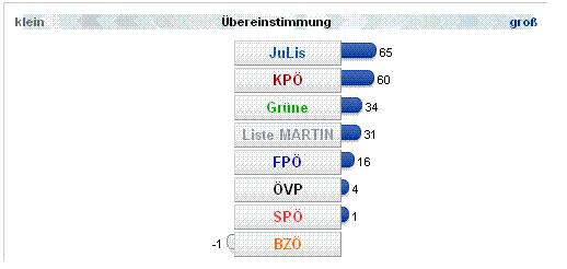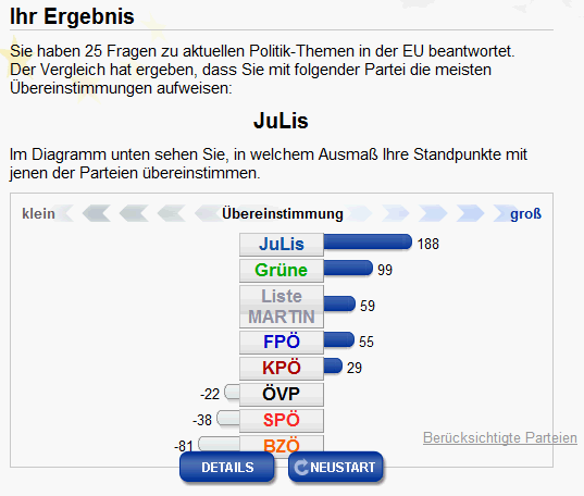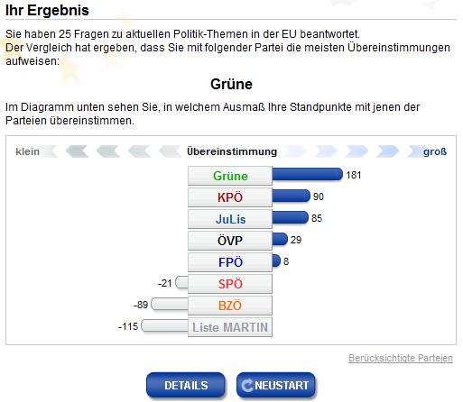 Auf Wahlkabine.at gibts wieder einmal einen Test, der einem bei der Entscheidung weiterhelfen soll.
