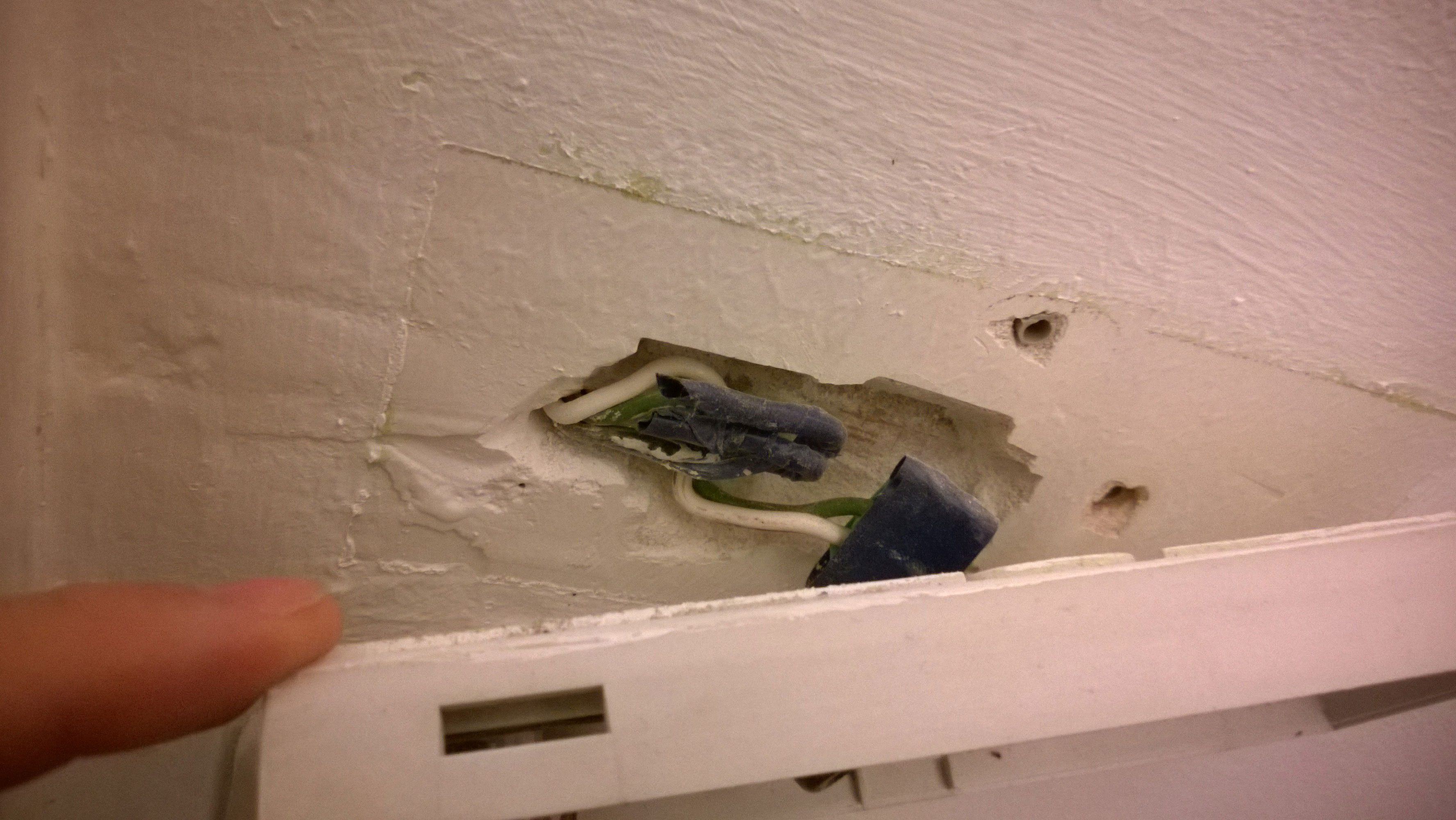 Aus der Wand kommen dort aber noch 2 weitere Stromkabel (blau und schwarz). Die sind abisoliert.