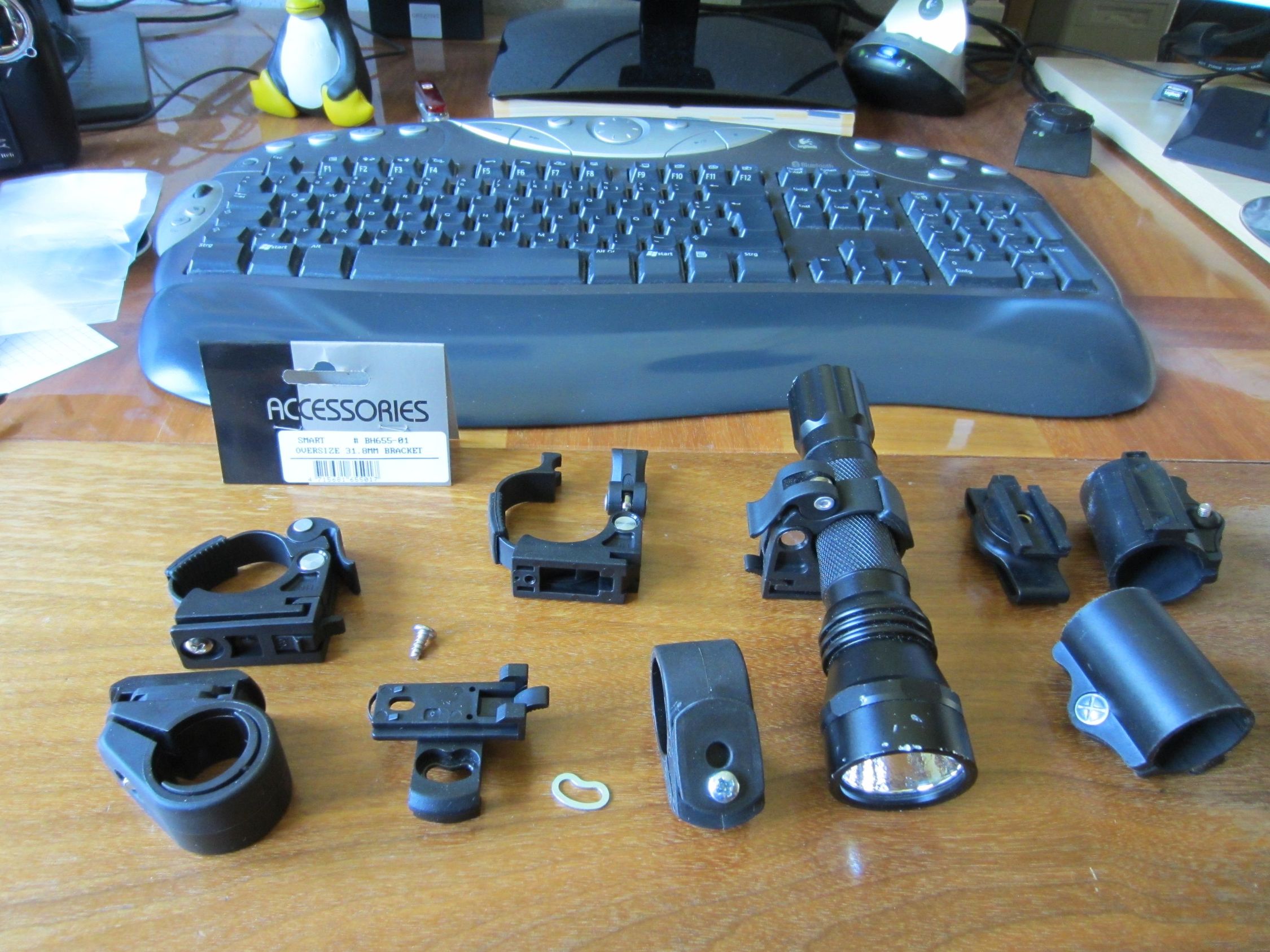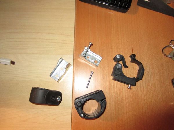@Brett: Ich hab jetz die perfekte Aufhängung für die Ultrafire gefunden, und zwar im Radgeschäft am Donaukanal-Radweg bei Spittelau (oben-links im Foto). Ich hab mal gleich 3 Stück davon gekauft für meine Radln (4.50€ das Stück)