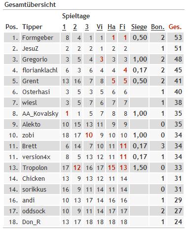 3. Für meine ZUSÄTZLICH abgegebenen Tipps fürs Halbfinale hab ich die meisten Punkte abgezockt und die werden aber viel zu geringschätzig honoriert!