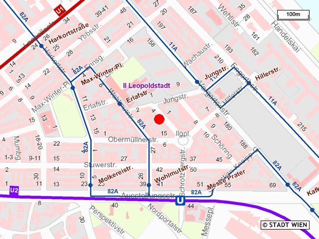 Sie liegt im Mezzanin und ist nahe der FH bfi Wien, dem Prater und bald