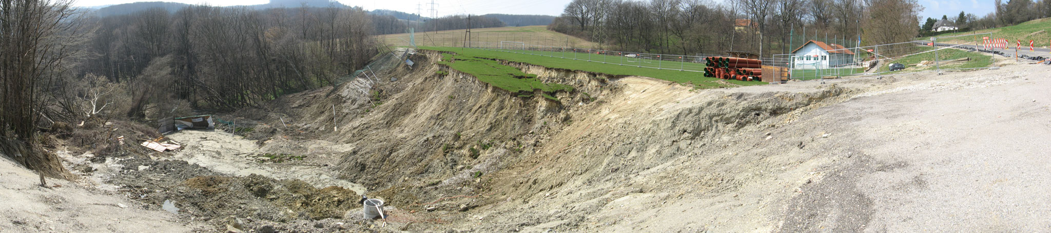 Der B4ch hatte bereits begonnen, die Hauptstraße zu unterspülen (vielleicht erinnert sich der eine oder andre an die eingebrochene We1dlinger H4uptstraße, wo 2003 das H0chwasser zu Gast war) - hier wurde Material angeschüttet.