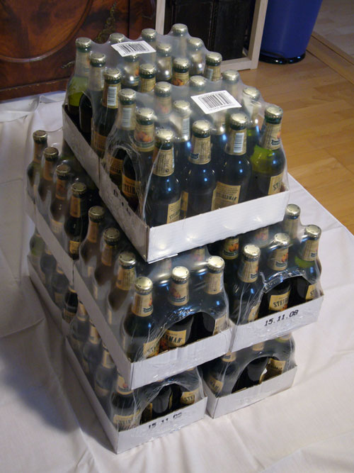 Und siehe da, als ich zwei Stunden später ins Wachzimmer komm, stehen 2 Kisten mit diversen Bieren da. =)