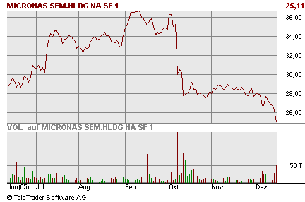 Micronas +3 % (das waren die, mit knapp -20 vor wenigen Wochen)