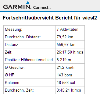 Oben kannst du mit <Weiter> auf die anderen Tage wechseln. Auch ein Wechsel auf <Anzeigen in Metrisch> empfiehlt sich. Wenn man bei Garmin nicht eingeloggt ist, merkt sich die Seite die Einstellungen leider nicht.