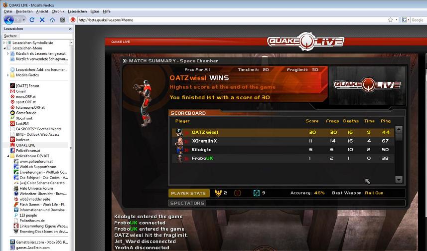 Ein Ergebnis, wie beim Skispringen, mein erster richtiger Online Quake Sieg.
