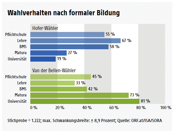 Ich werd auch das ungute Gefühl nicht los dass die Hofer Wähler auch größtenteils aus 'Überzeugung' gewählt haben und nicht um den Van der Bellen eins auszuwischen, während beim Van der Bellen in der 2. Runde viele ihn nur gewählt haben damits der Hofer nicht wird. So wirklich als Sieg fühlt sich das nicht an.