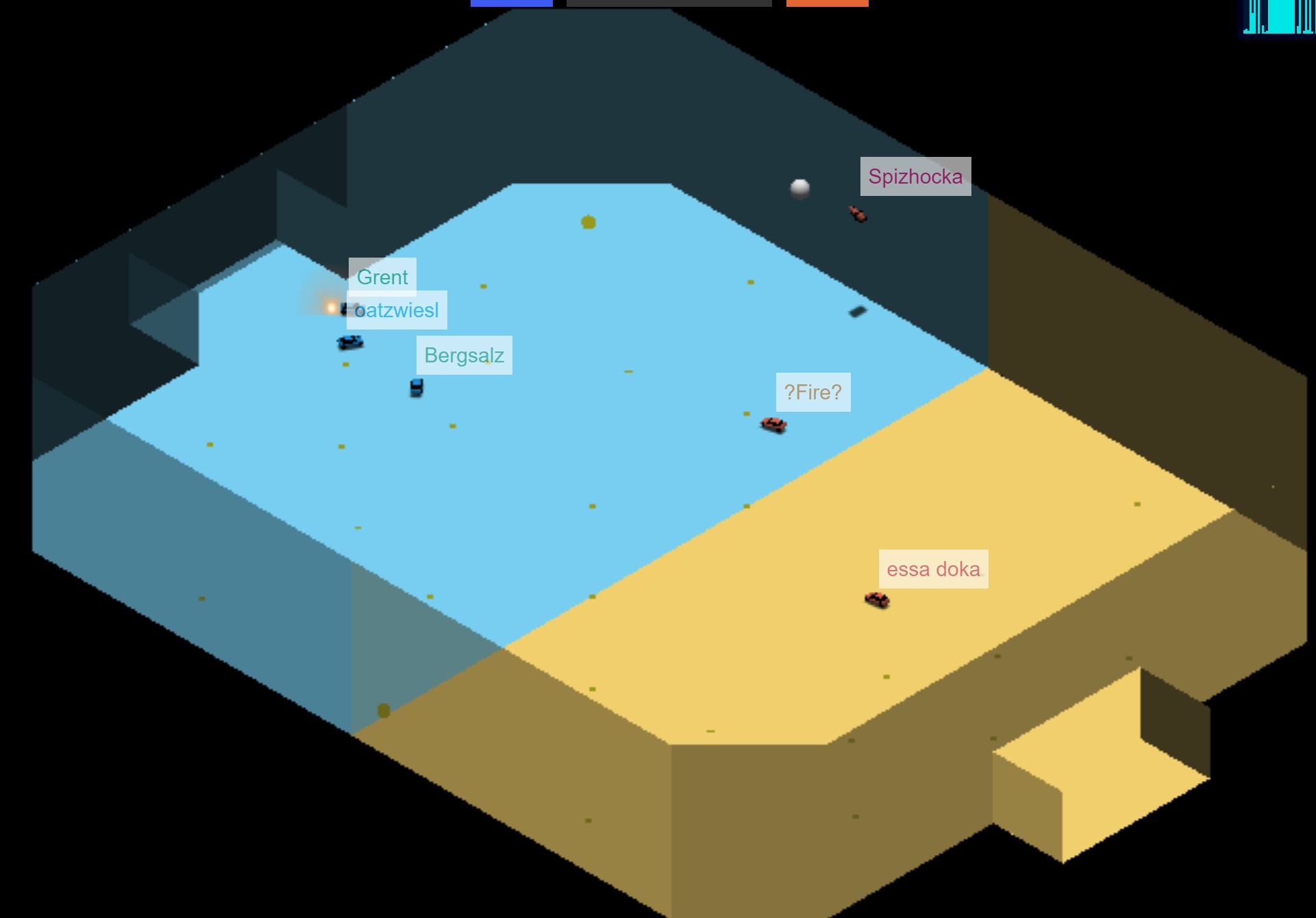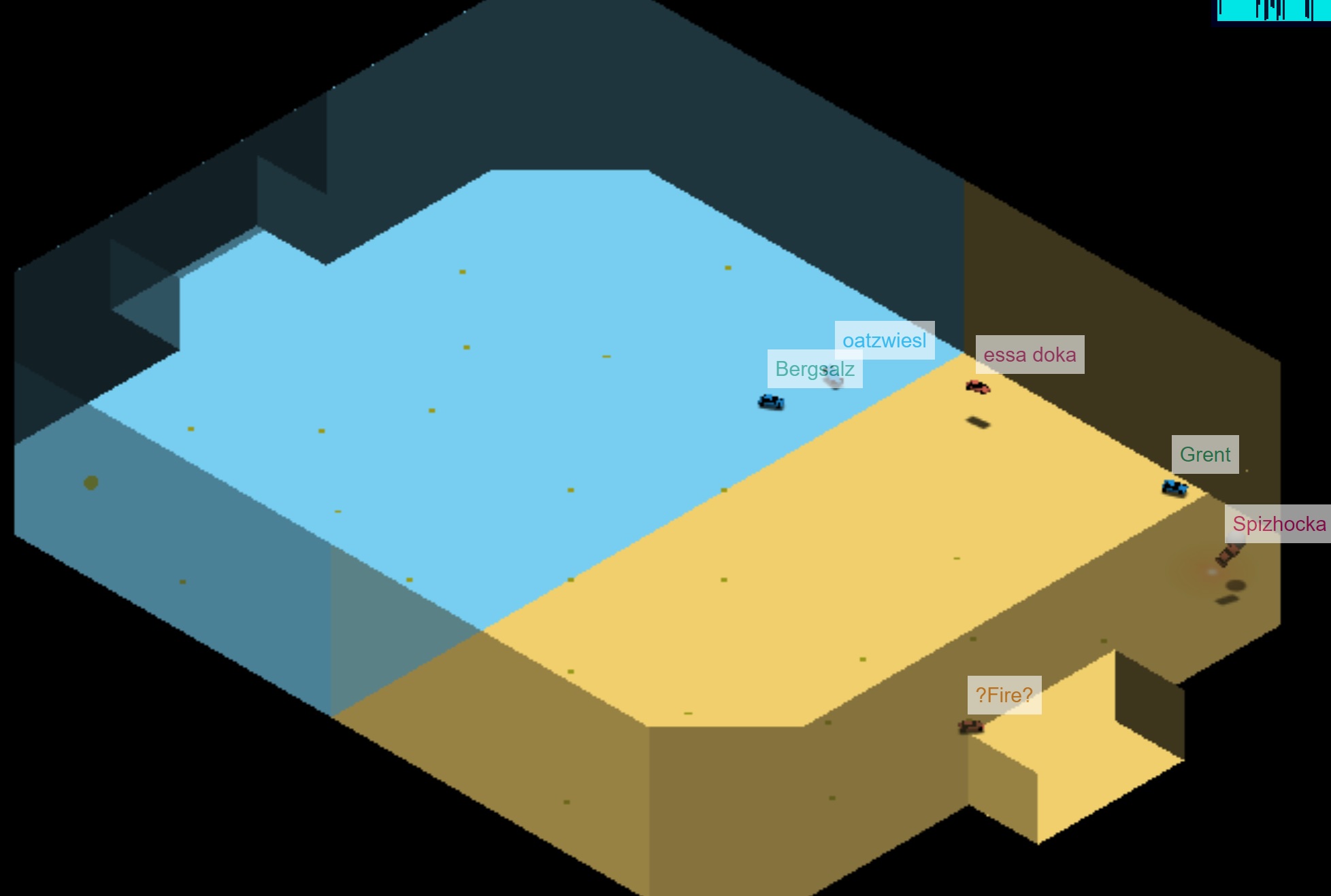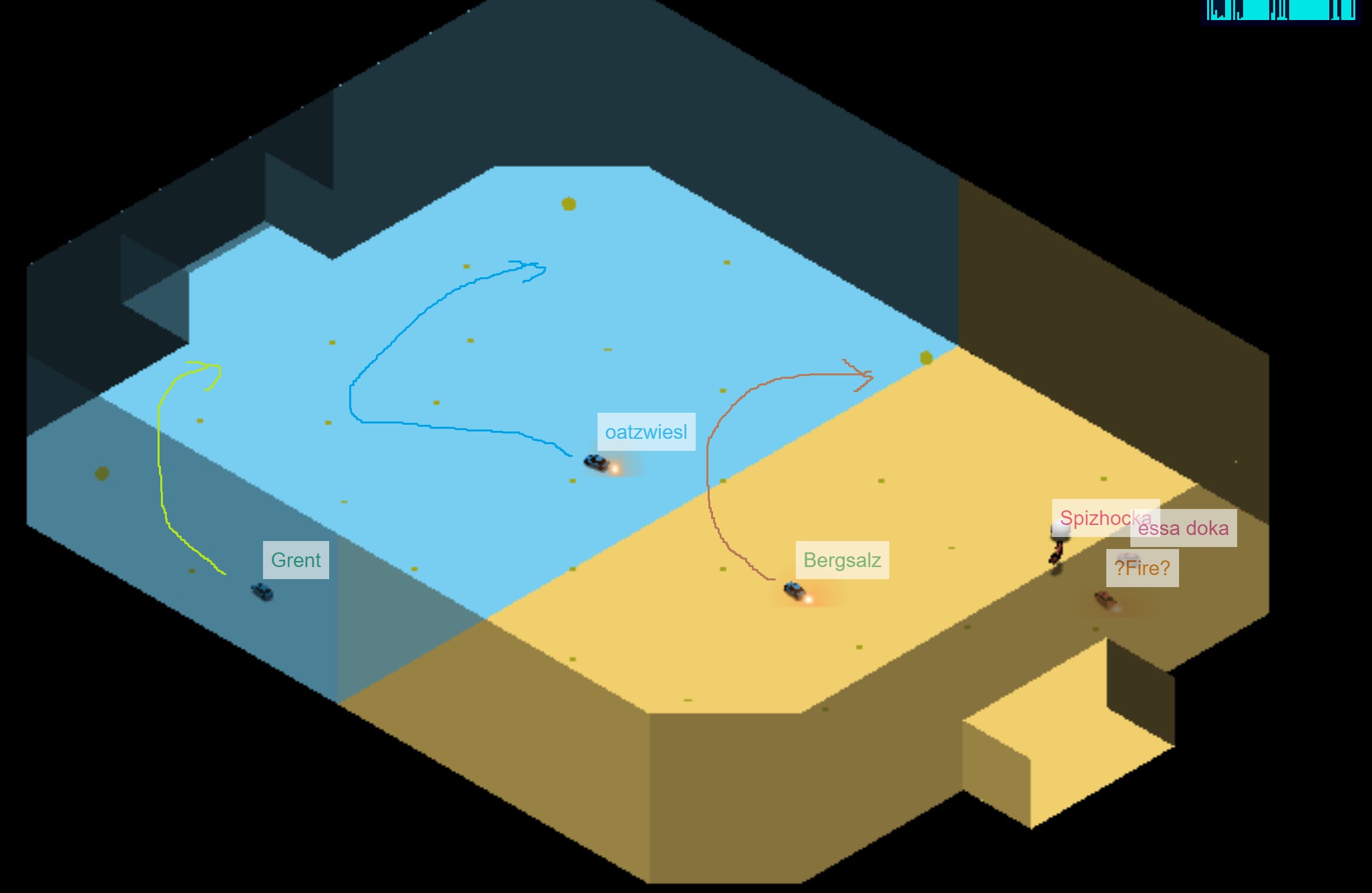 => wir verletzen die Spacing Regel, dass jeder in einem eigenen Neuntel des Spielfelds sein soll. Bis jetzt ist aber noch nix passiert.
