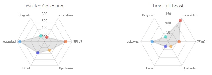 ("Wasted Collection" heißt, man sammelt über 100 hinaus."Time Full Boost" ist, wie lange man voll "hortet".)
