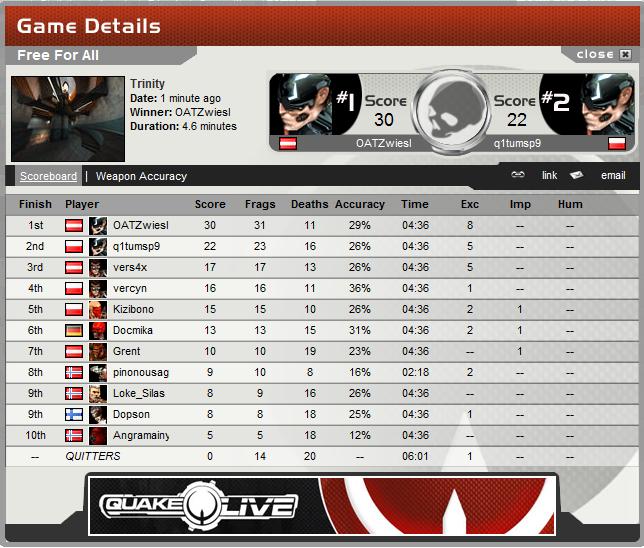 Ein Ergebnis, wie beim Skispringen, mein erster richtiger Online Quake Sieg.